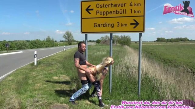 Plötzlich hat das Paar Lust zu ficken. Deswegen fahren Sie mit dem Auto einfach rechts ran und treiben es versaut an einem Straßenschild. Es ist natürlich ein Wunder, dass die beiden Amateure Kitty bei diesem öffentlichen Porno nicht erwischt werden, denn nachdem sie es an einem Straßenschild getrieben haben, gehen sie heimlich auf einen Friedhof und ficken hinter einer Hecke. Das ist wirklich besonders versaut, und so einen öffentlichen Porno wird man wohl nicht so schnell wiedersehen. Auch der schlanken Blondine scheint es gut zu gefallen.